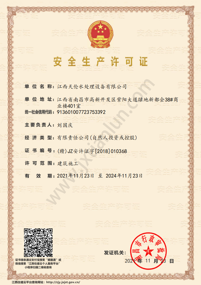 2005年:天倫進(jìn)入高新開發(fā)區(qū)留學(xué)生創(chuàng)業(yè)園,進(jìn)入快速發(fā)展階段,成立江西天倫水處理設(shè)備有限公司